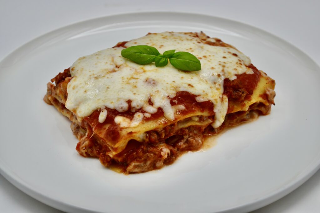 Bolognese Sauce, Bechamel, Mozzarella & Parmesan.