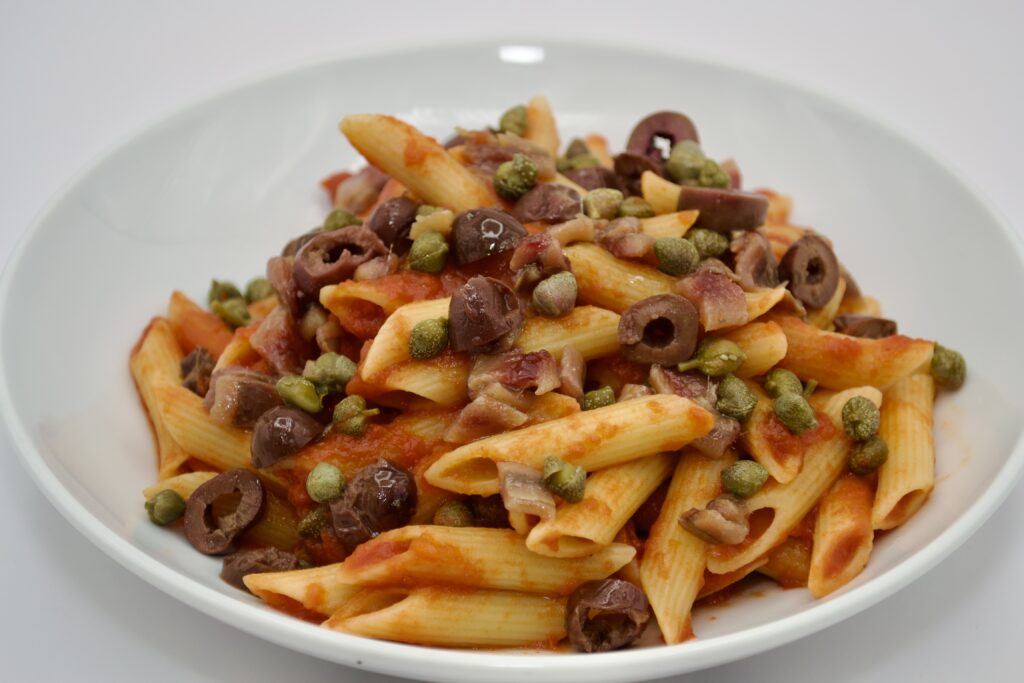 Penne, Pomodoro Sauce, Capers, Anchovies & Olives.