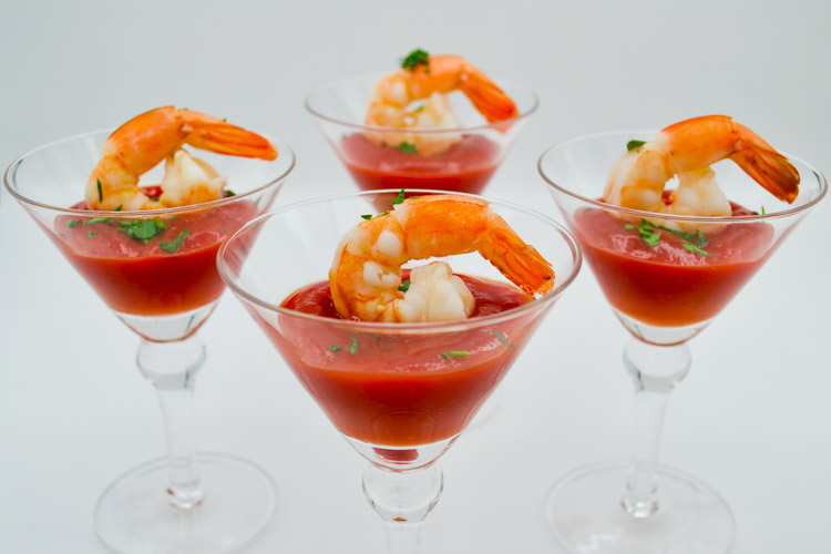 Served Cold With Cocktail Sauce In A Martini Glass.