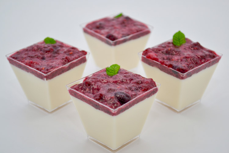 Silky Italian dessert made with vanilla cream cover with berries jam.