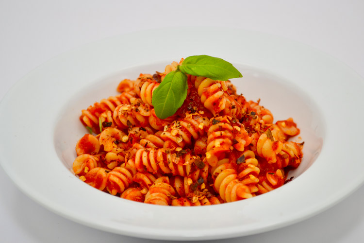 Fusilli, Cherry Tomato, Basil & Arrabiata Sauce.