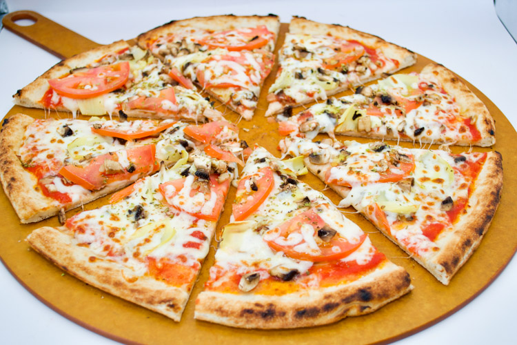Tomato Sauce, Mozzarella, Mushrooms, Artichoke Hearts, Tomato & Basil.