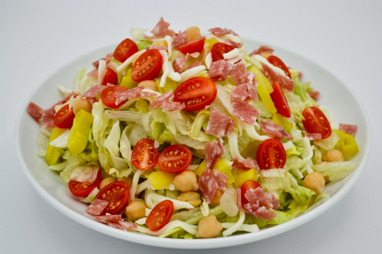 Lettuce, Salami, Mozzarella, Garbanzo Beans, Pepperoncini, Cherry Tomato & Italian Vinaigrette.
