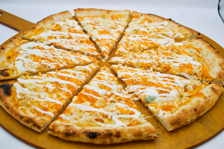 Hot Buffalo Sauce, Chicken, Blue Cheese, Mozzarella & Ranch Sauce.
