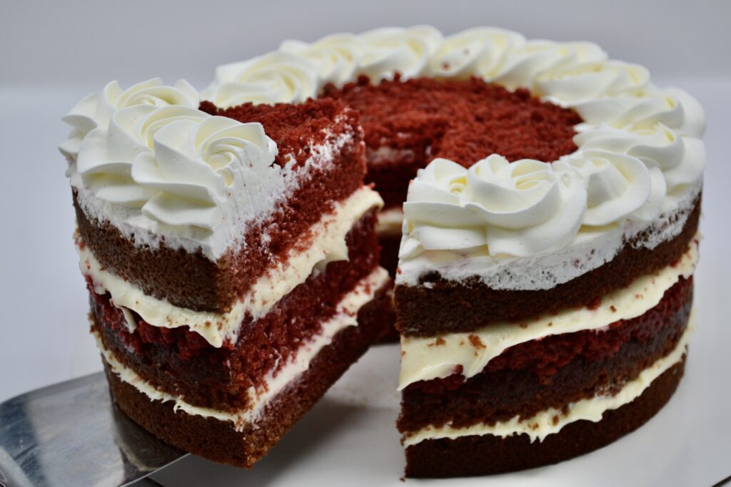 Red Velvet Cake with Cream Cheese White Brigadeiro Filling & Whipped Cream.